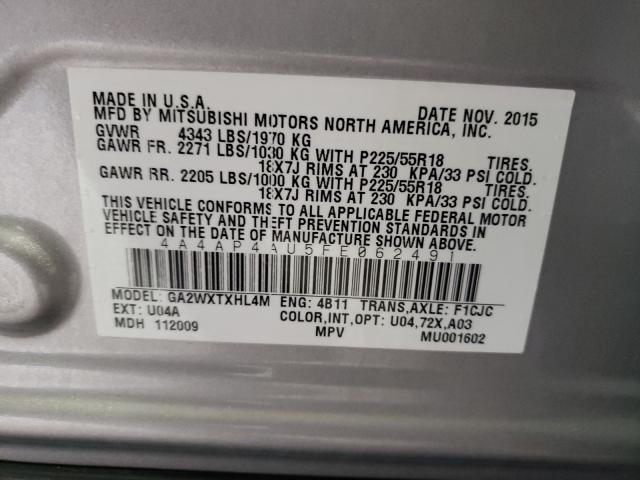 This 2015 Mitsubishi Outlander (Silver) comes from a major insurance auction in the USA or Canada. All information on this page is linked to the vehicle’s VIN (4A4AP4AU5FE062491), which helps confirm where the car was listed and what condition it was in at the time of sale.