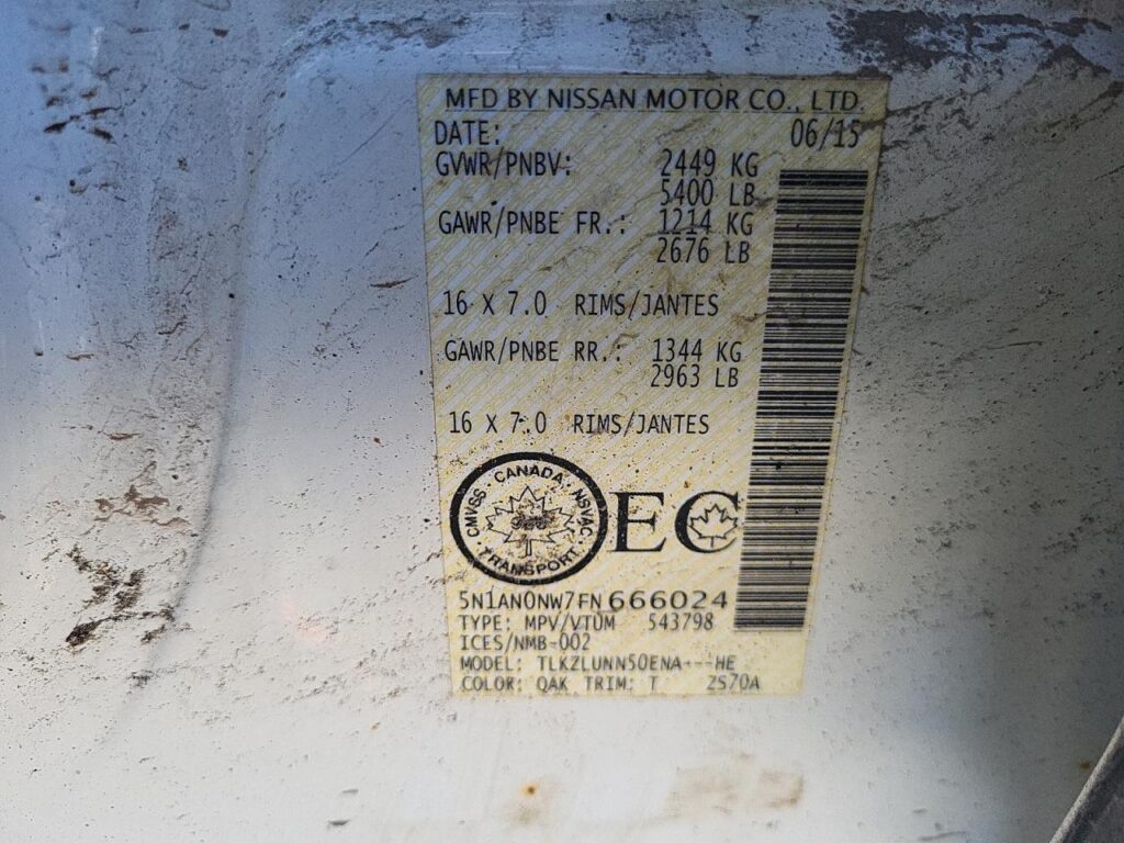 This 2015 Nissan Xterra (White) comes from a major insurance auction in the USA or Canada. All information on this page is linked to the vehicle’s VIN (5N1AN0NW7FN666024), which helps confirm where the car was listed and what condition it was in at the time of sale.