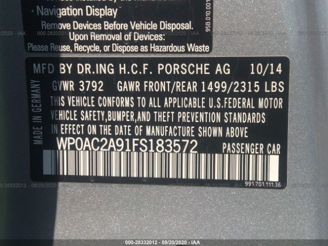 2015 Porsche 911 – WP0AC2A91FS183572