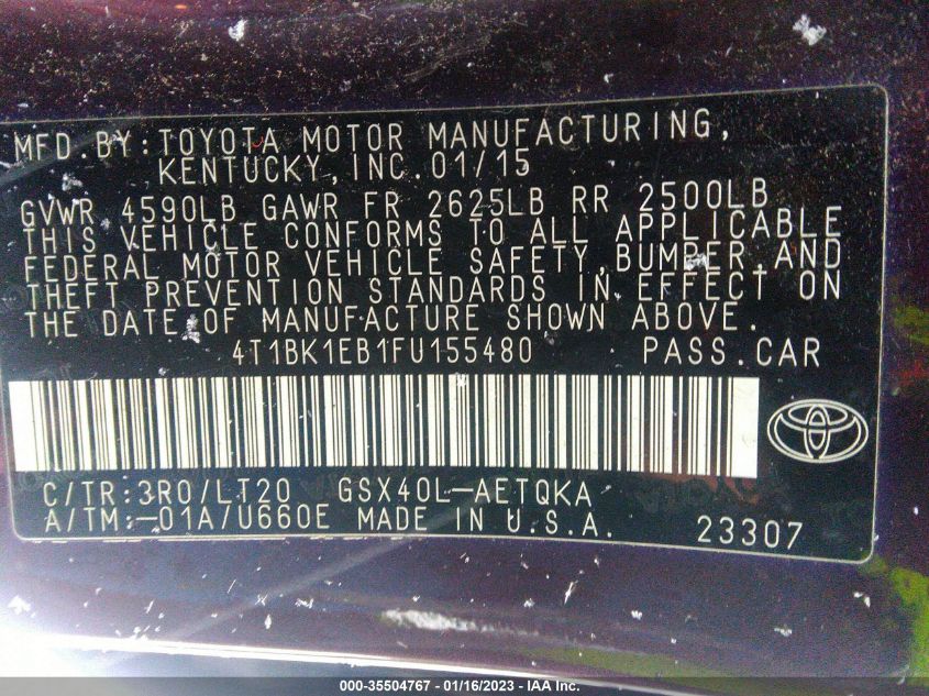 This 2015 Toyota Avalon (Red) comes from a major insurance auction in the USA or Canada. All information on this page is linked to the vehicle’s VIN (4T1BK1EB1FU155480), which helps confirm where the car was listed and what condition it was in at the time of sale.