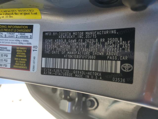 This 2015 Toyota Avalon (Silver) comes from a major insurance auction in the USA or Canada. All information on this page is linked to the vehicle’s VIN (4T1BK1EB5FU173660), which helps confirm where the car was listed and what condition it was in at the time of sale.