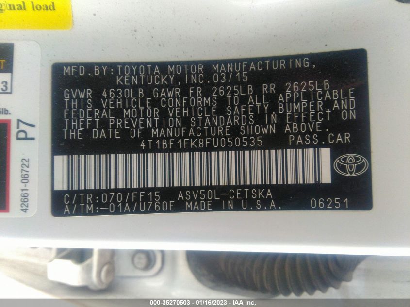 | VIN Number | 4T1BF1FK8FU050535 |