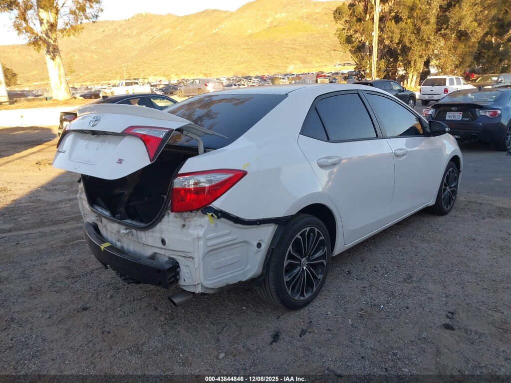 This 2015 Toyota Corolla (White) is equipped with an engine designed to balance performance and efficiency. According to the auction listing, the vehicle had 134,625 miles at the time of sale.