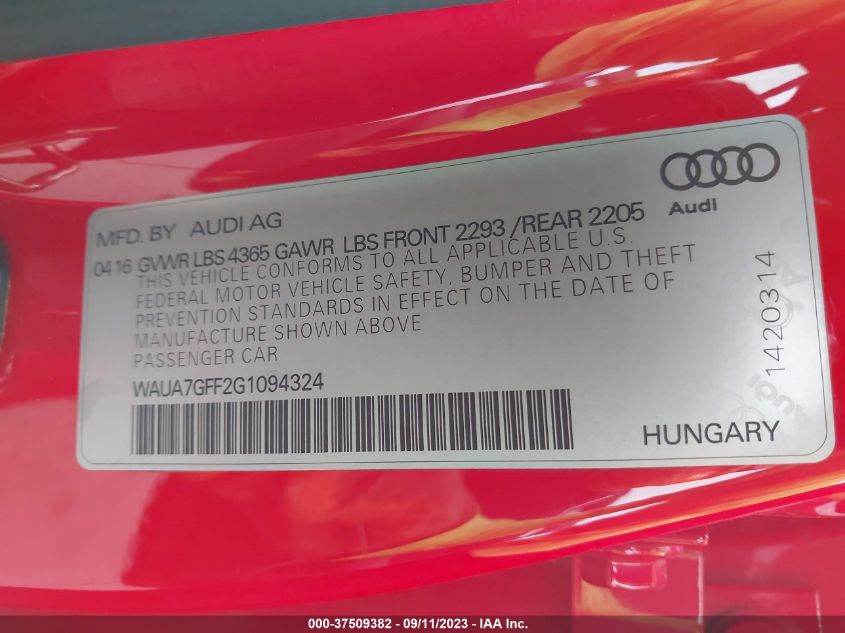 VIN: WAUA7GFF2G1094324