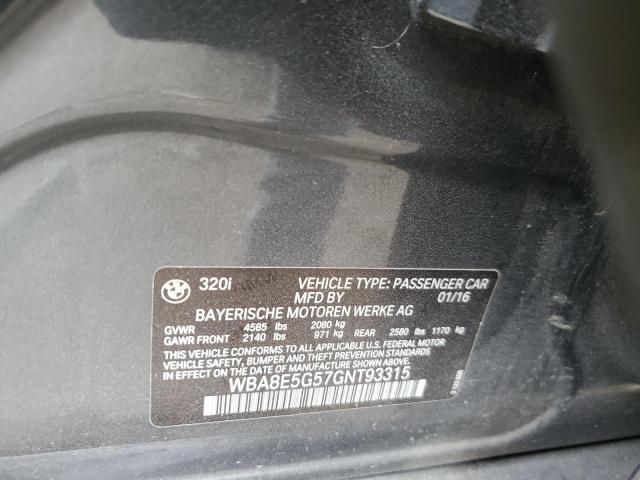 This 2016 BMW 3 Series (Grey) comes from a major insurance auction in the USA or Canada. All information on this page is linked to the vehicle’s VIN (WBA8E5G57GNT93315), which helps confirm where the car was listed and what condition it was in at the time of sale.