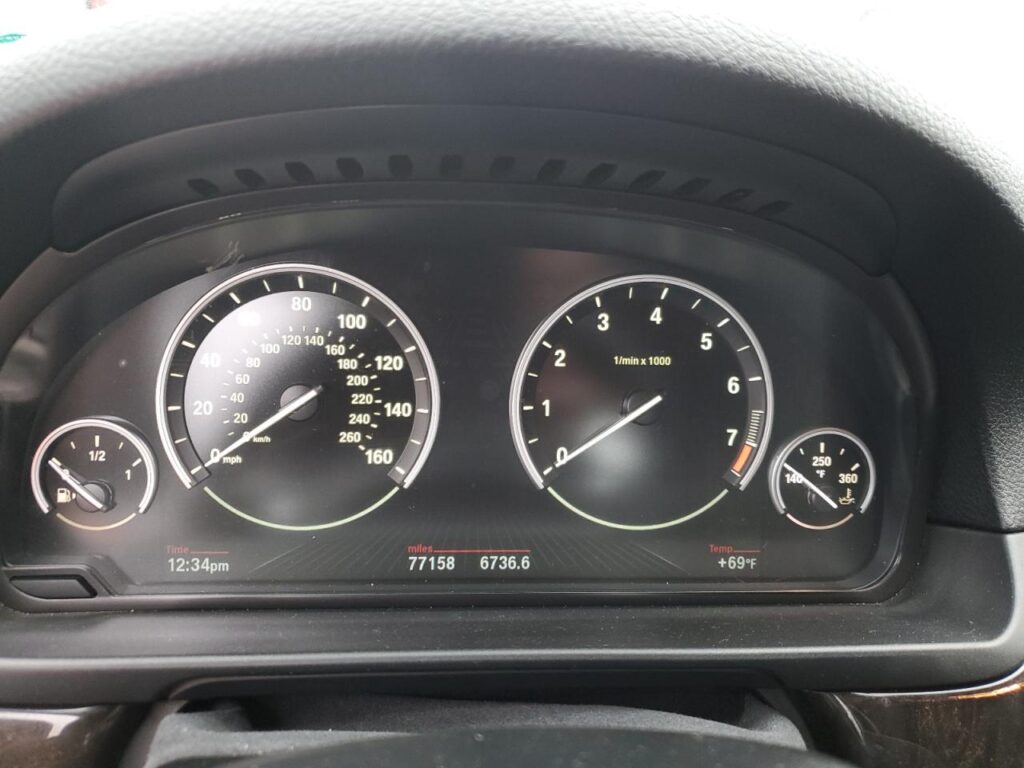 This 2016 BMW 5 SERIES (GRAY) is equipped with an engine designed to balance performance and efficiency. According to the auction listing, the vehicle had 77,158 miles at the time of sale.