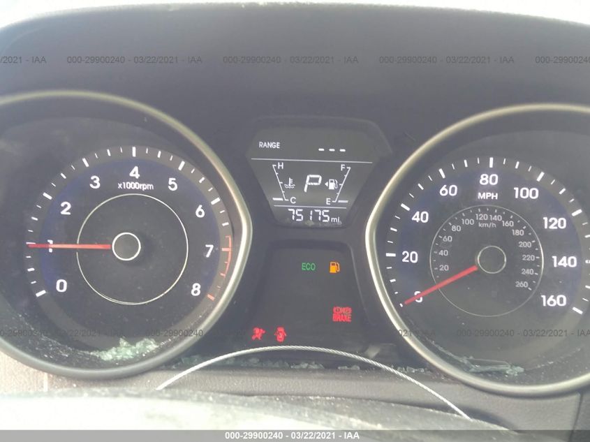 This 2016 Hyundai Elantra (Blue) is equipped with an engine designed to balance performance and efficiency. According to the auction listing, the vehicle had 75,175 miles at the time of sale.