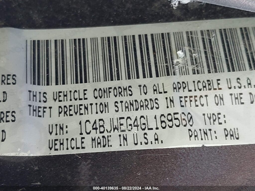 VIN: 1C4BJWEG4GL169560