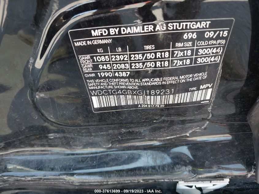 2016 MERCEDES-BENZ GLA – WDCTG4GBXGJ189231