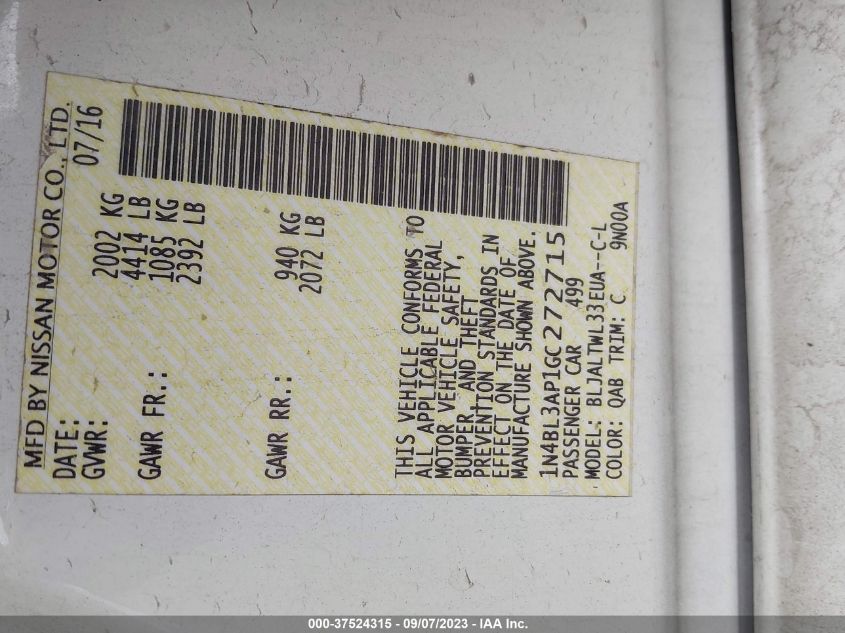 2016 NISSAN ALTIMA – 1N4BL3AP1GC272715