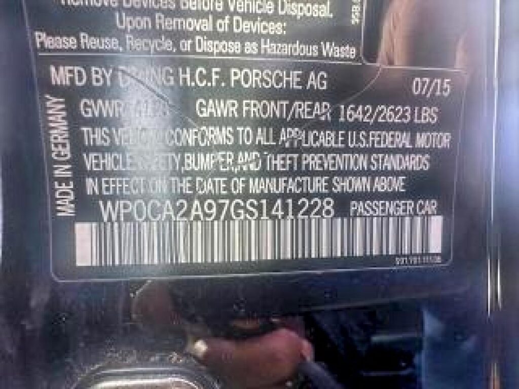 | VIN Number | WP0CA2A97GS141228 |