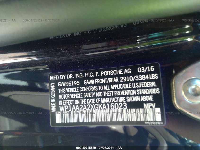 2016 PORSCHE CAYENNE – WP1AA2A2XGKA16023