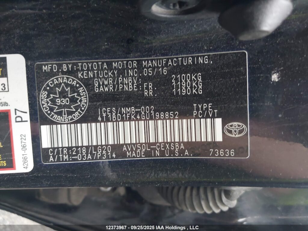 | VIN Number | 4T1BD1FK4GU198852 |