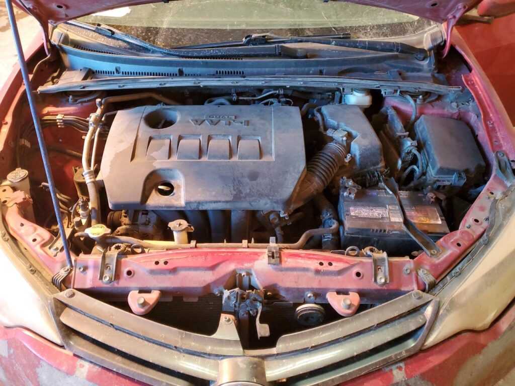 This 2016 Toyota Corolla (Red) is equipped with an engine designed to balance performance and efficiency. According to the auction listing, the vehicle had 258,649 miles at the time of sale.