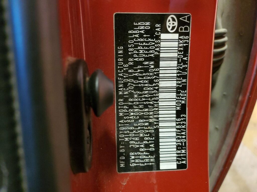 2016 Toyota Corolla – 5YFBURHE6GP456716