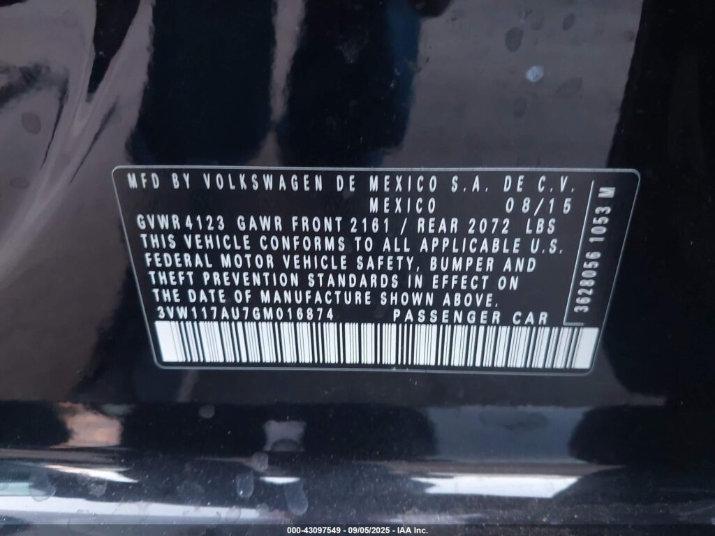 | VIN Number | 3VW117AU7GM016874 |