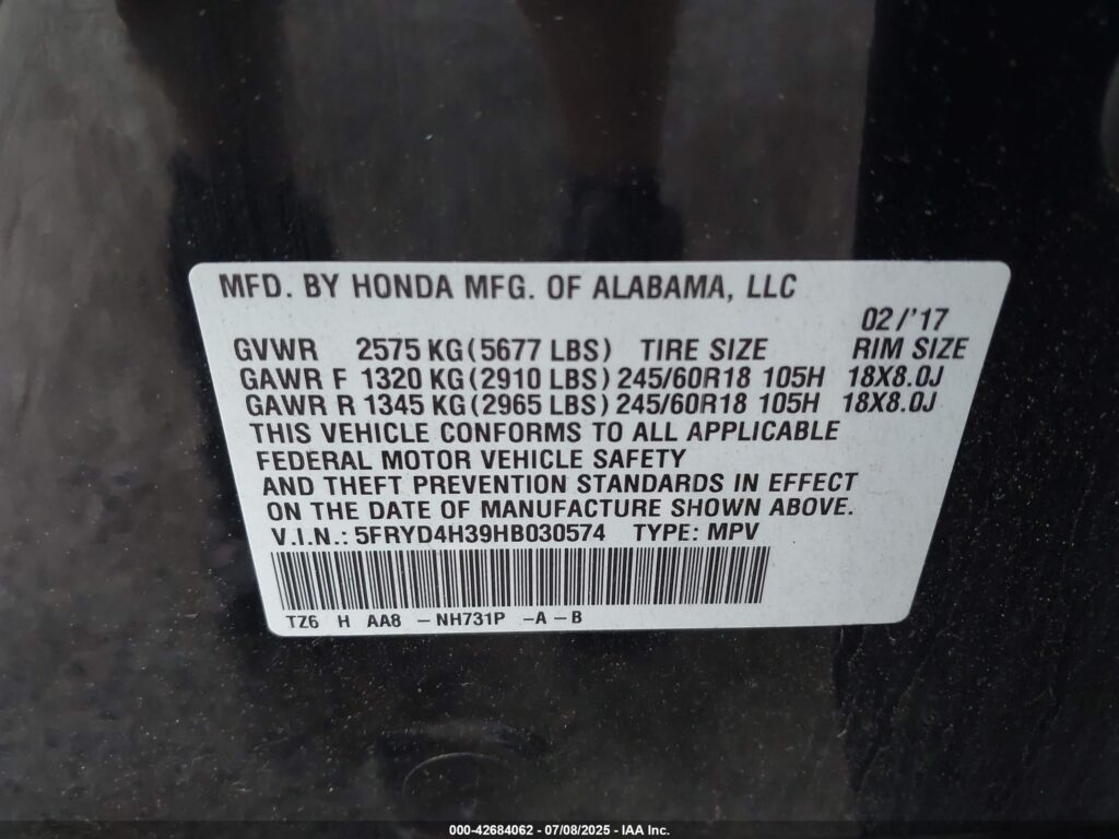 | VIN Number | 5FRYD4H39HB030574 |