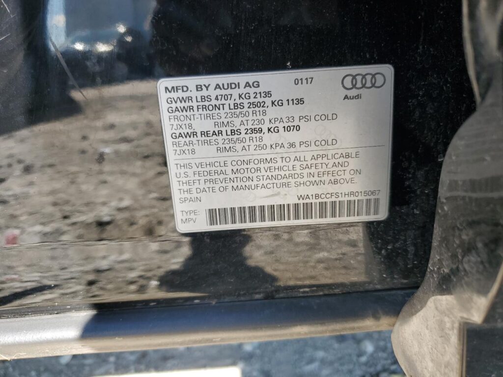 | VIN Number | WA1BCCFS1HR015067 |