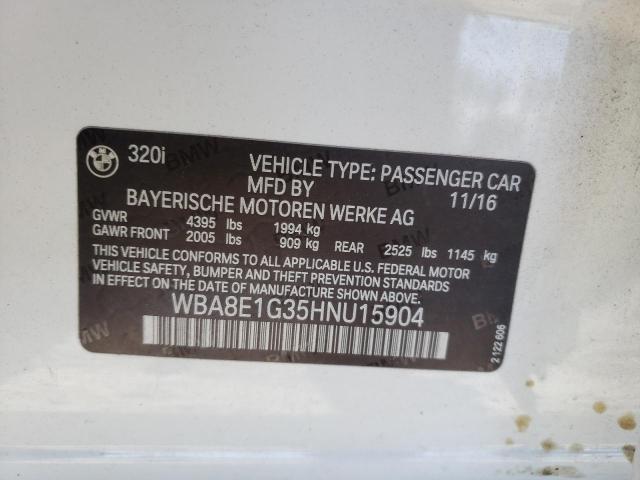 This 2017 BMW 3 Series (White) comes from a major insurance auction in the USA or Canada. All information on this page is linked to the vehicle’s VIN (WBA8E1G35HNU15904), which helps confirm where the car was listed and what condition it was in at the time of sale.