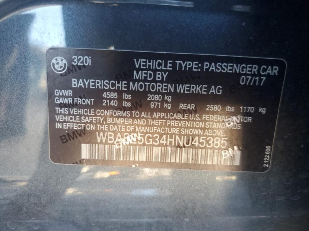 This 2017 BMW 3 SERIES (GRAY) comes from a major insurance auction in the USA or Canada. All information on this page is linked to the vehicle’s VIN (WBA8E5G34HNU45385), which helps confirm where the car was listed and what condition it was in at the time of sale.