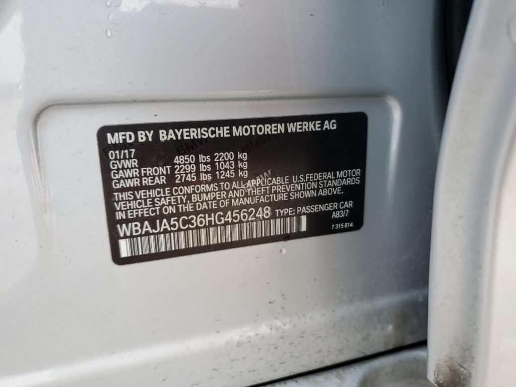 VIN NumberWBAJA5C36HG456248