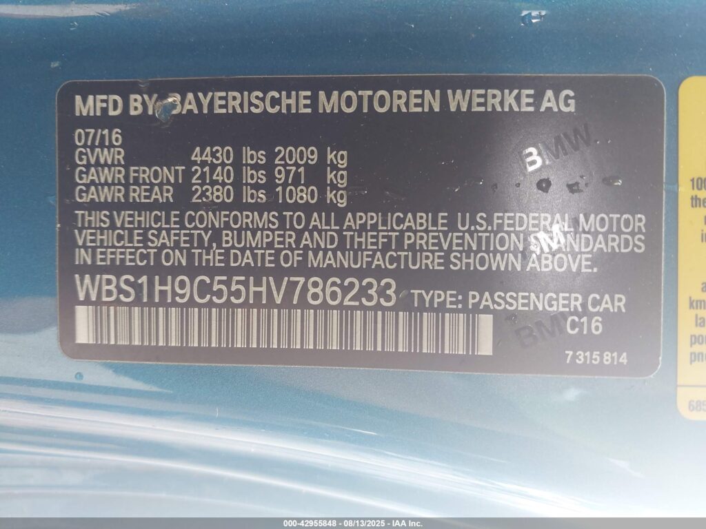 | VIN Number | WBS1H9C55HV786233 |