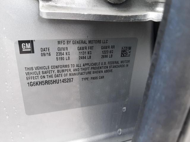 This 2017 CADILLAC CT6 (SILVER) comes from a major insurance auction in the USA or Canada. All information on this page is linked to the vehicle’s VIN (1G6KH5R65HU145287), which helps confirm where the car was listed and what condition it was in at the time of sale.