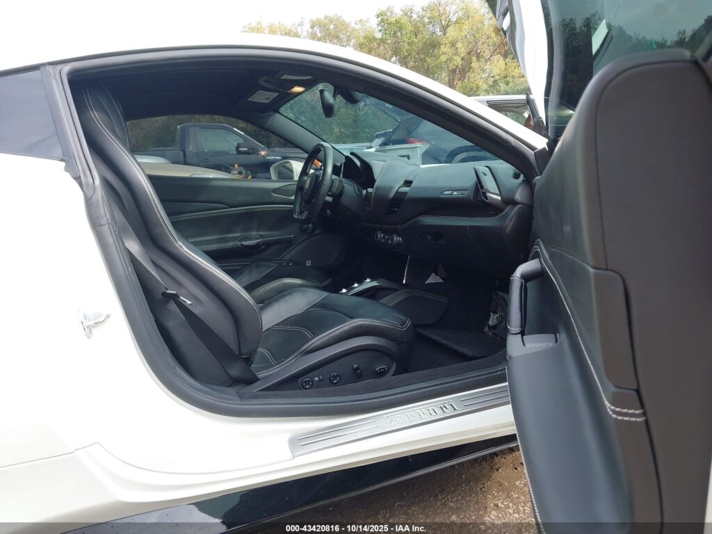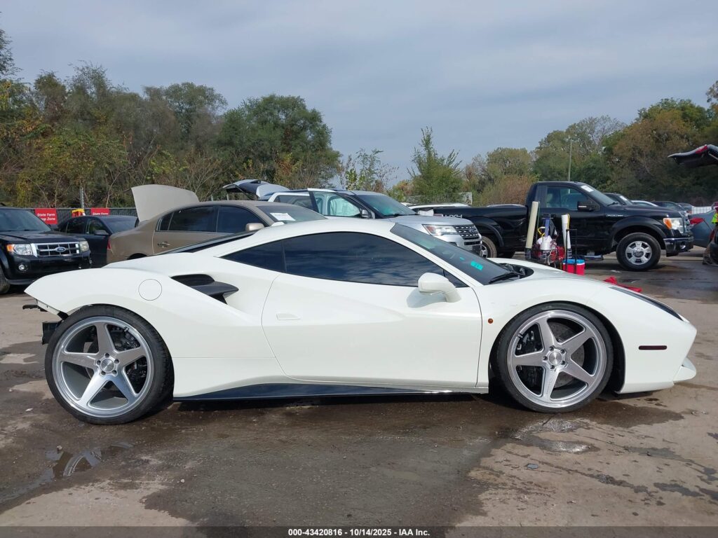 This 2017 Ferrari 488 GTB (White) is equipped with an engine designed to balance performance and efficiency. According to the auction listing, the vehicle had 15,109 miles at the time of sale.