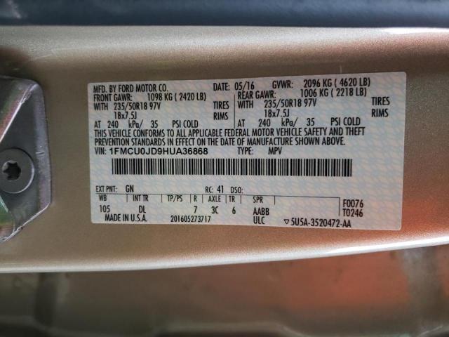 This 2017 Ford Escape (Beige) comes from a major insurance auction in the USA or Canada. All information on this page is linked to the vehicle’s VIN (1FMCU0JD9HUA36868), which helps confirm where the car was listed and what condition it was in at the time of sale.