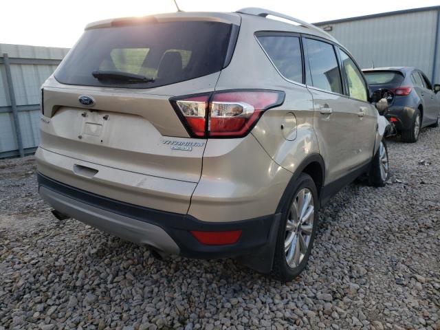 This 2017 Ford Escape (Beige) is equipped with an engine designed to balance performance and efficiency. According to the auction listing, the vehicle had 76,782 miles at the time of sale.