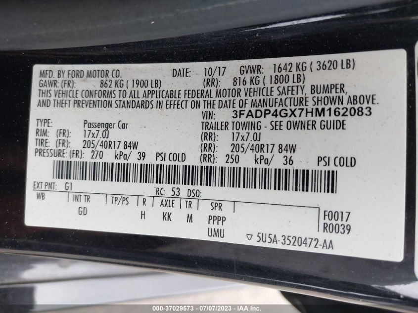 This 2017 Ford Fiesta (Other) comes from a major insurance auction in the USA or Canada. All information on this page is linked to the vehicle’s VIN (3FADP4GX7HM162083), which helps confirm where the car was listed and what condition it was in at the time of sale.