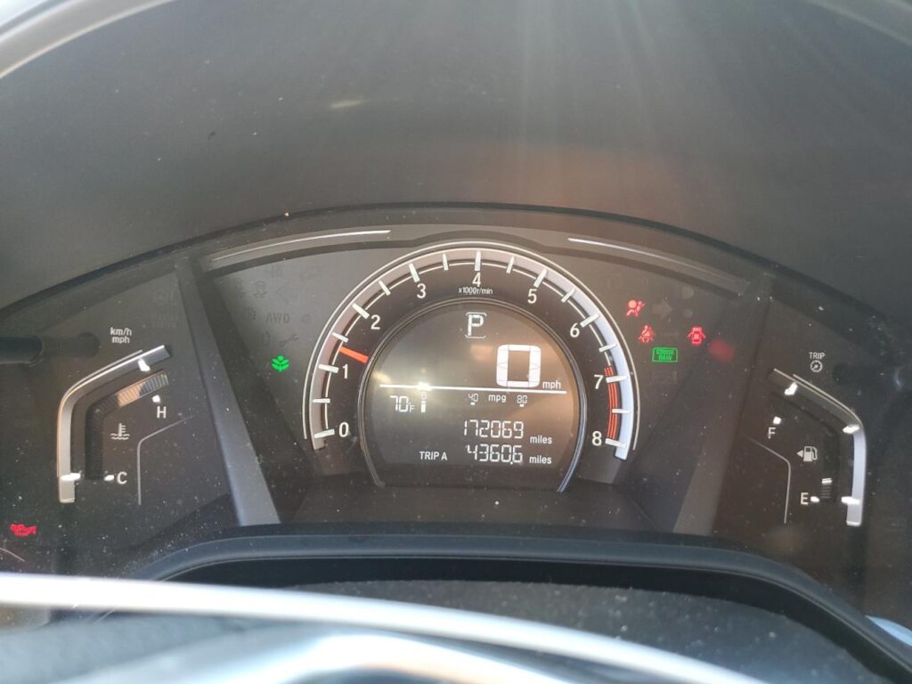 This 2017 Honda CR-V (Black) is equipped with an engine designed to balance performance and efficiency. According to the auction listing, the vehicle had 172,069 miles at the time of sale.