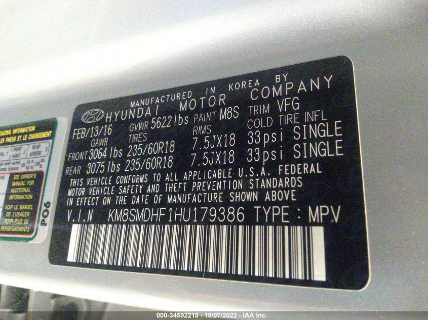 2017 Hyundai Santa Fe – KM8SMDHF1HU179386