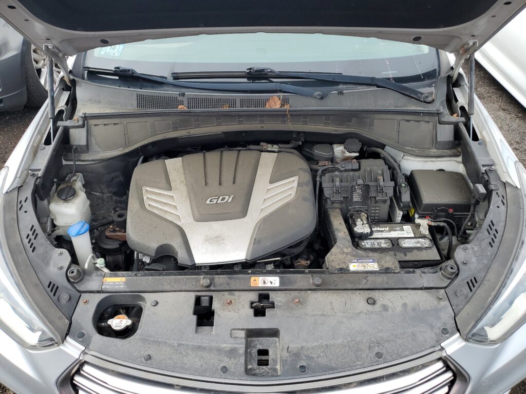 This 2017 Hyundai Santa Fe (Silver) is equipped with an engine designed to balance performance and efficiency. According to the auction listing, the vehicle had 90,471 miles at the time of sale.