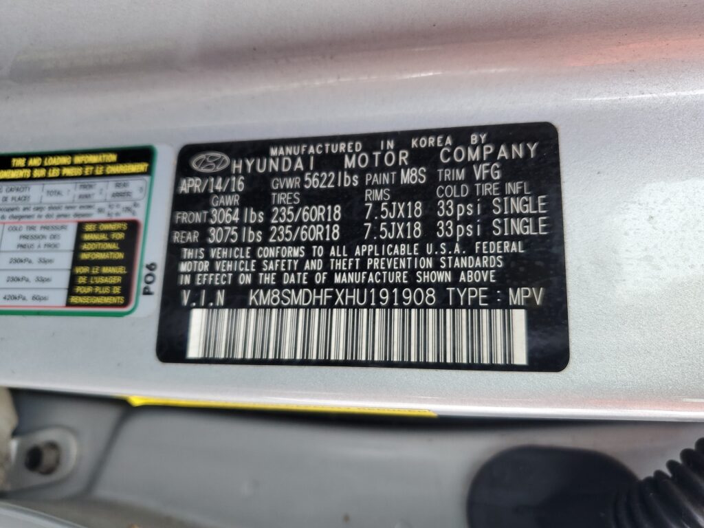 | VIN Number | KM8SMDHFXHU191908 |