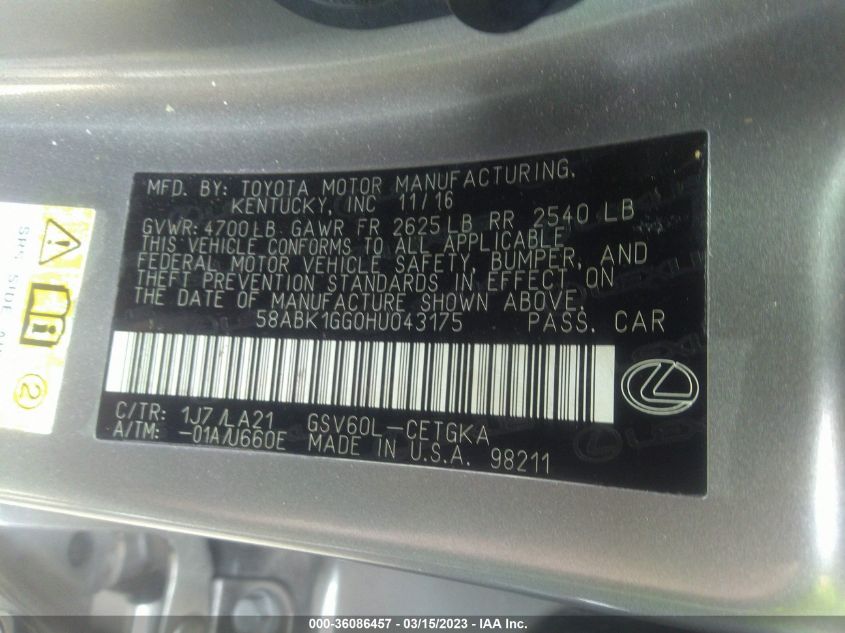 2017 Lexus ES 350 – 58ABK1GG0HU043175