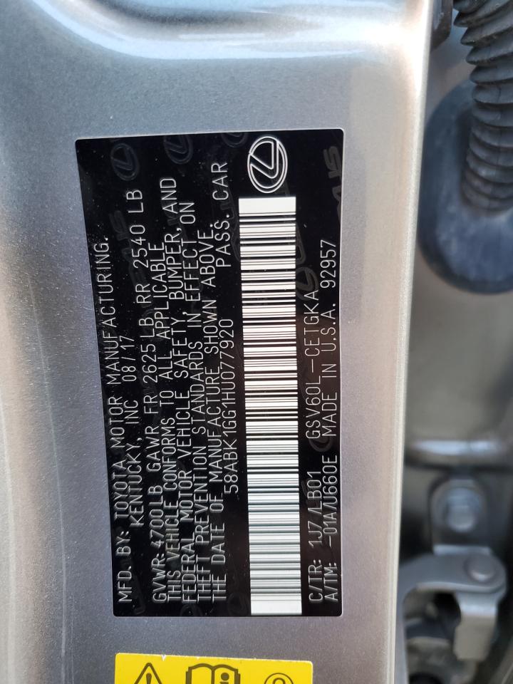 This 2017 Lexus ES 350 (Grey) comes from a major insurance auction in the USA or Canada. All information on this page is linked to the vehicle’s VIN (58ABK1GG1HU077920), which helps confirm where the car was listed and what condition it was in at the time of sale.