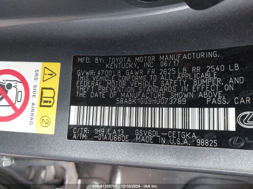 2017 LEXUS ES – 58ABK1GG9HU073789