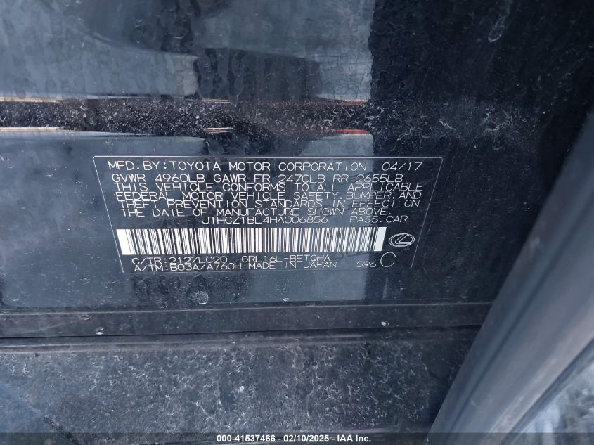 VIN NumberJTHCZ1BL4HA006856