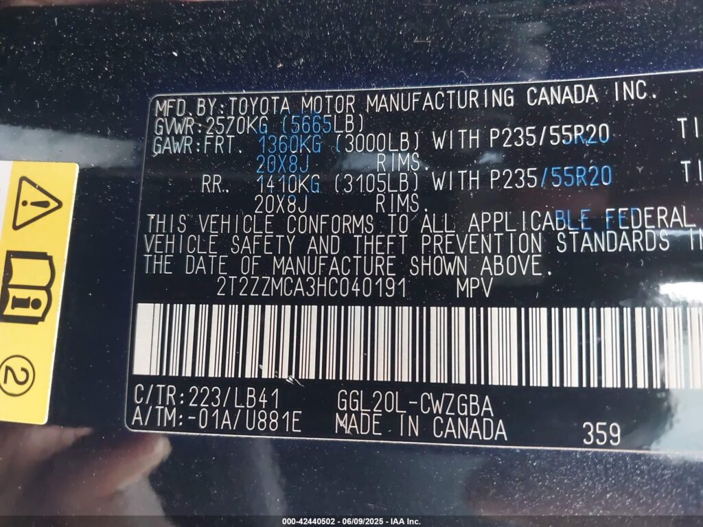 VIN Number2T2ZZMCA3HC040191