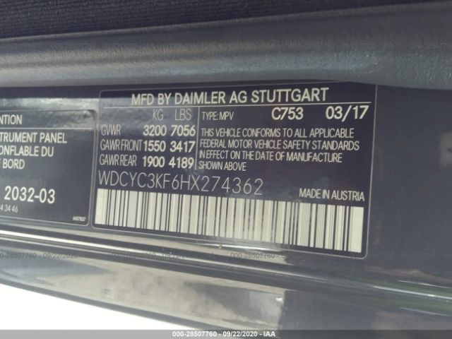 | VIN Number | WDCYC3KF6HX274362 |