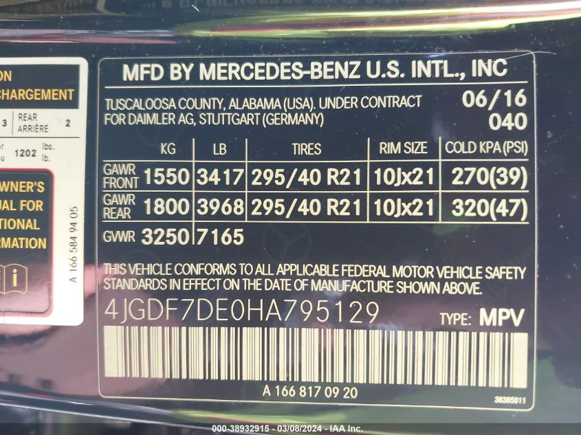 | VIN Number | 4JGDF7DE0HA795129 |