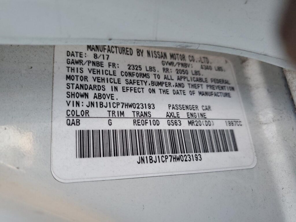 This 2017 Nissan Rogue (White) comes from a major insurance auction in the USA or Canada. All information on this page is linked to the vehicle’s VIN (JN1BJ1CP7HW023193), which helps confirm where the car was listed and what condition it was in at the time of sale.