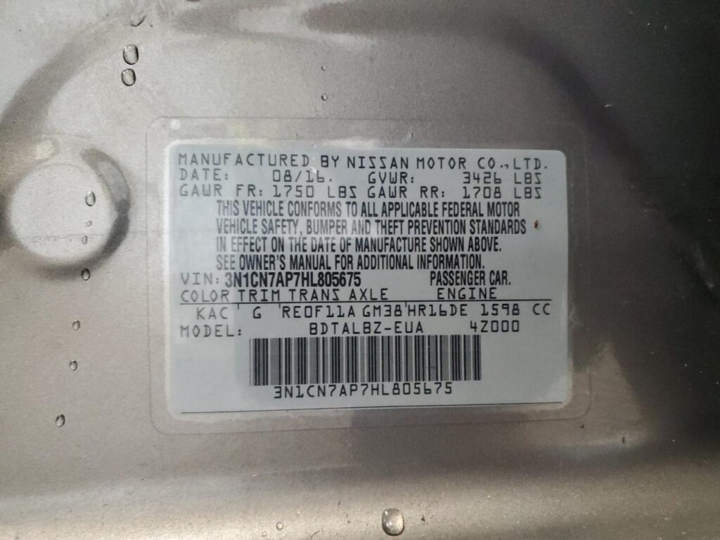 | VIN Number | 3N1CN7AP7HL805675 |