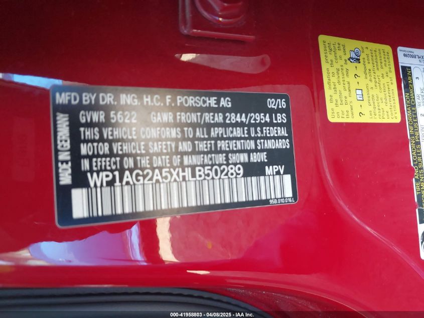 | VIN Number | WP1AG2A5XHLB50289 |