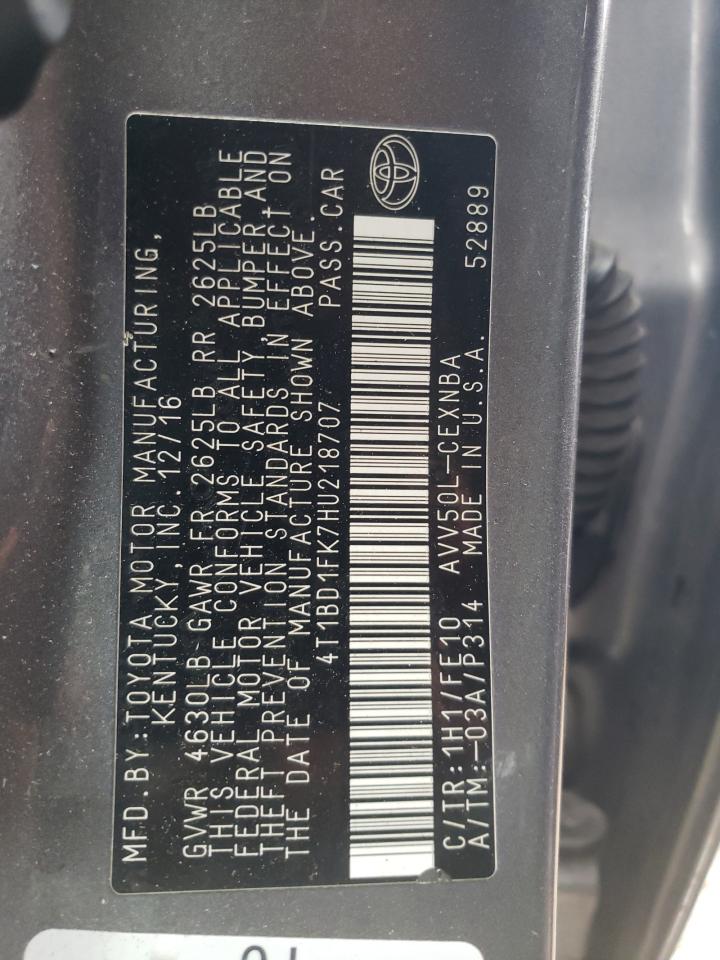 This 2017 TOYOTA CAMRY (GRAY) comes from a major insurance auction in the USA or Canada. All information on this page is linked to the vehicle’s VIN (4T1BD1FK7HU218707), which helps confirm where the car was listed and what condition it was in at the time of sale.