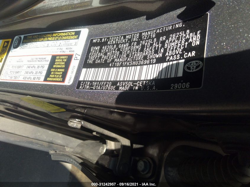 2017 TOYOTA CAMRY – 4T1BF1FK5HU369619