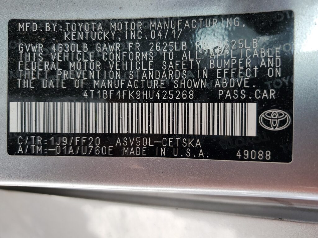 VIN Number4T1BF1FK9HU425268