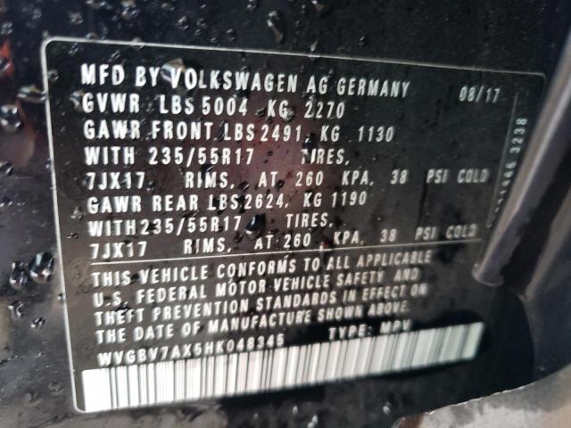This 2017 Volkswagen Tiguan (Black) comes from a major insurance auction in the USA or Canada. All information on this page is linked to the vehicle’s VIN (WVGBV7AX5HK048345), which helps confirm where the car was listed and what condition it was in at the time of sale.