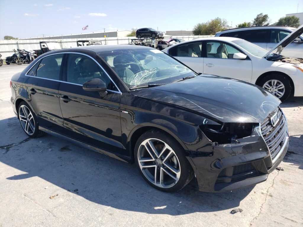 This 2018 Audi A3 (Black) is equipped with an engine designed to balance performance and efficiency. According to the auction listing, the vehicle had 51,703 miles at the time of sale.